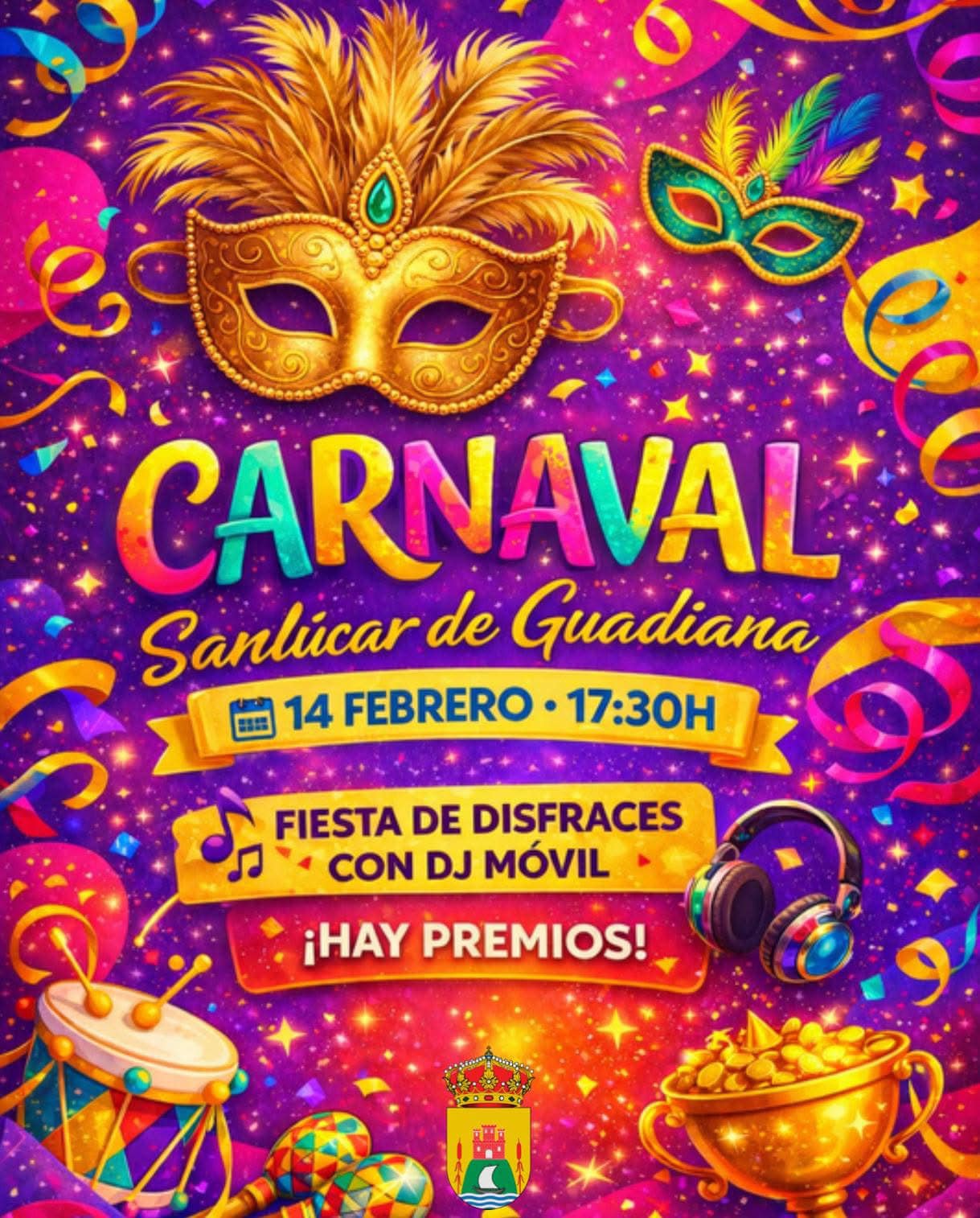 Sanlúcar de Guadiana vivirá su Carnaval con una fiesta de disfraces animada por DJ móvil y premios para los mejores disfraces.