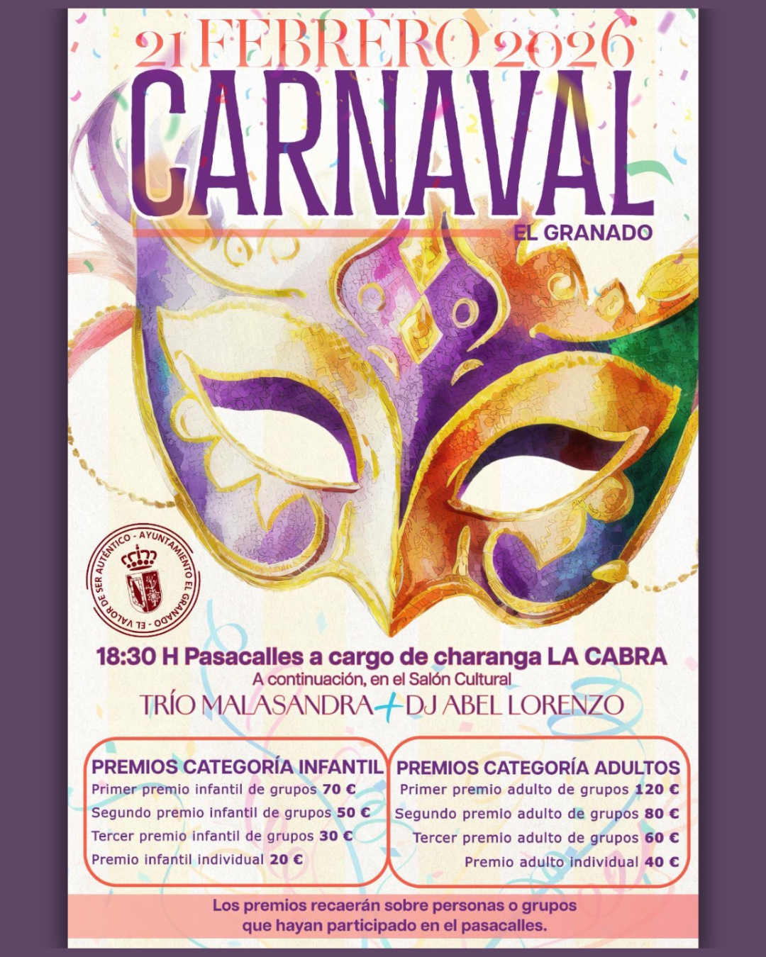 Los municipios de Beturia continuarán celebrando sus carnavales y, a partir del 20 de febrero, llegará el momento de disfrutar de una de las festividades más esperadas del año en Puebla de Guzmán, El Granado, Tharsis, Santa Bárbara de Casa y Villanueva de los Castillejos. Durante estos días, las calles de estas localidades se llenarán de color, música y creatividad con pasacalles, concursos de disfraces, actuaciones y actividades pensadas para todas las edades.