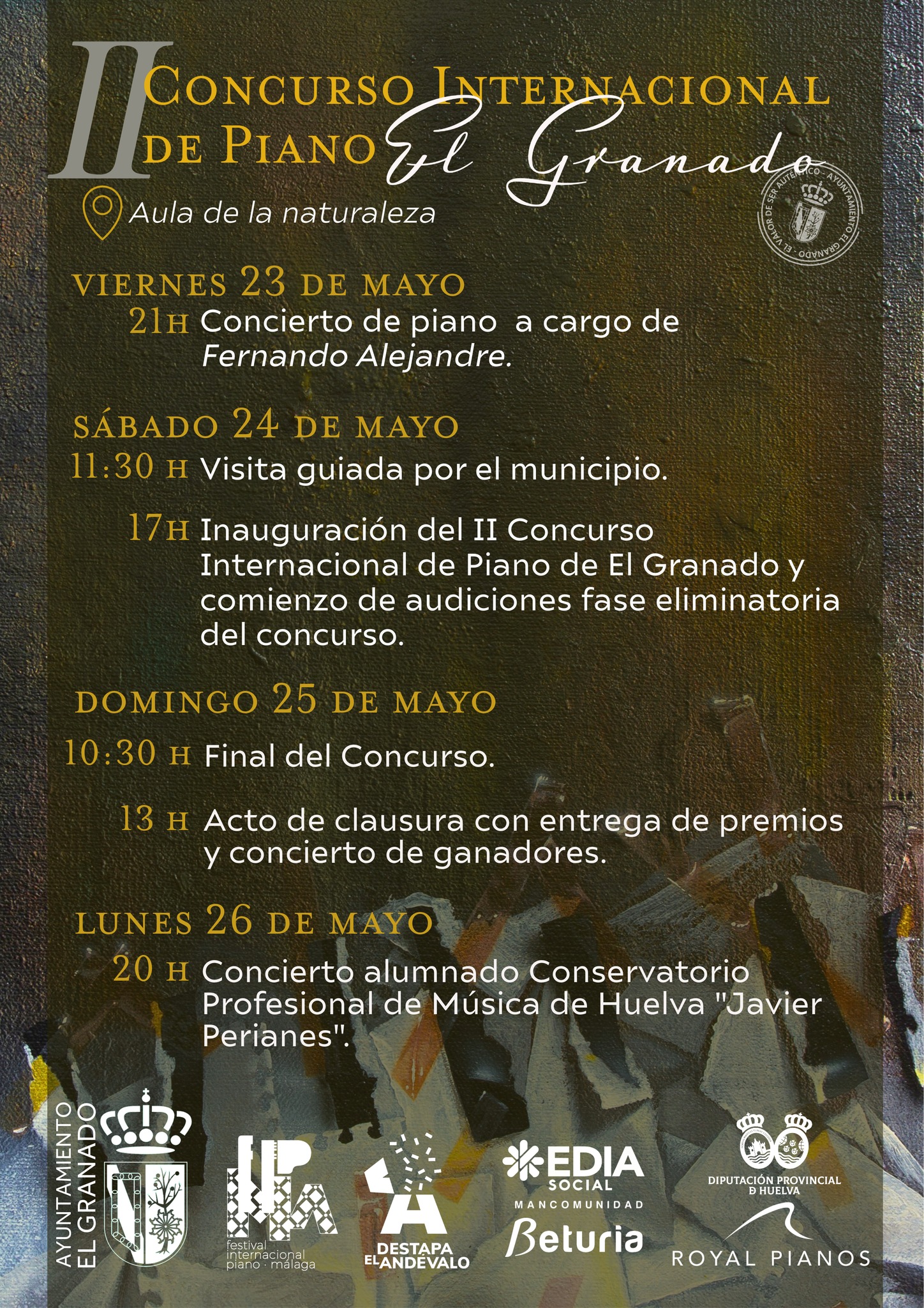 El 25 de mayo viviremos la final, y después, la entrega de premios junto a un concierto de los ganadores. Para cerrar, el 26 de mayo disfrutaremos del talento del alumnado del Conservatorio de Huelva Javier Perianes.