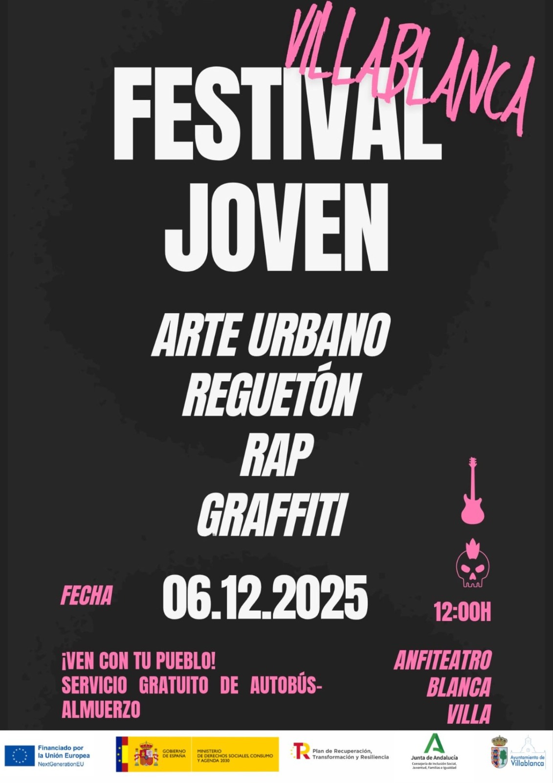 El 6 de diciembre, Villablanca acoge el Festival Joven, un espacio dedicado a la creatividad, la música y la cultura urbana.