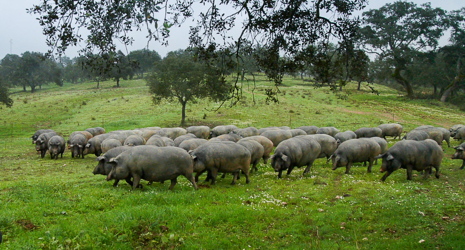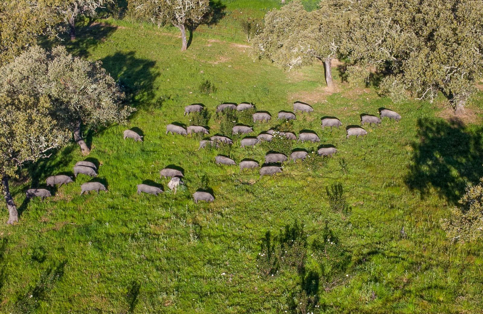 Bajo encinas y alcornoques, el ibérico recorre kilómetros cada día buscando bellotas y pastos naturales. Ese movimiento, ese ritmo tranquilo del campo, forma parte del secreto que convierte nuestro producto en algo único y que hace del Andévalo un lugar auténtico para descubrir con calma.