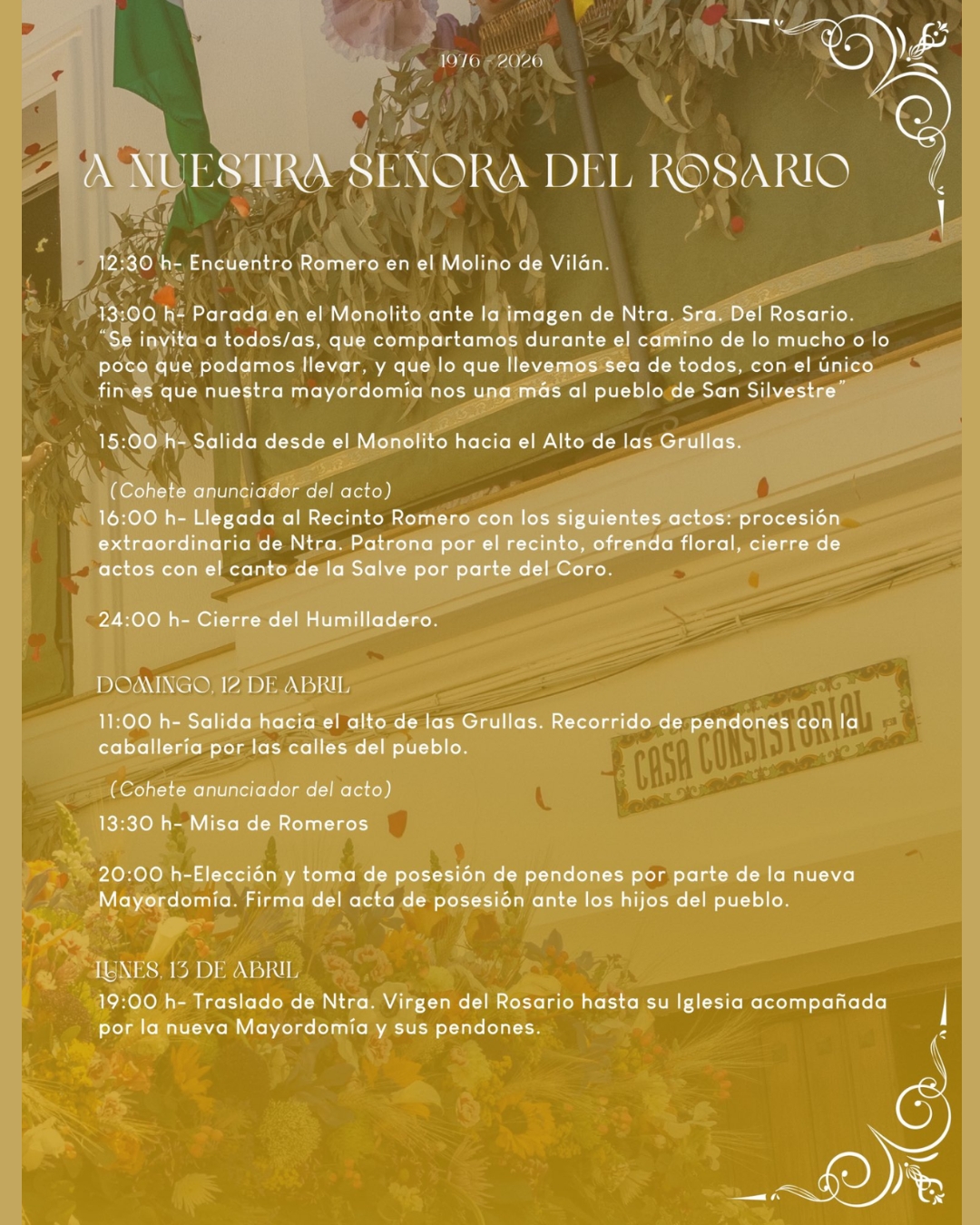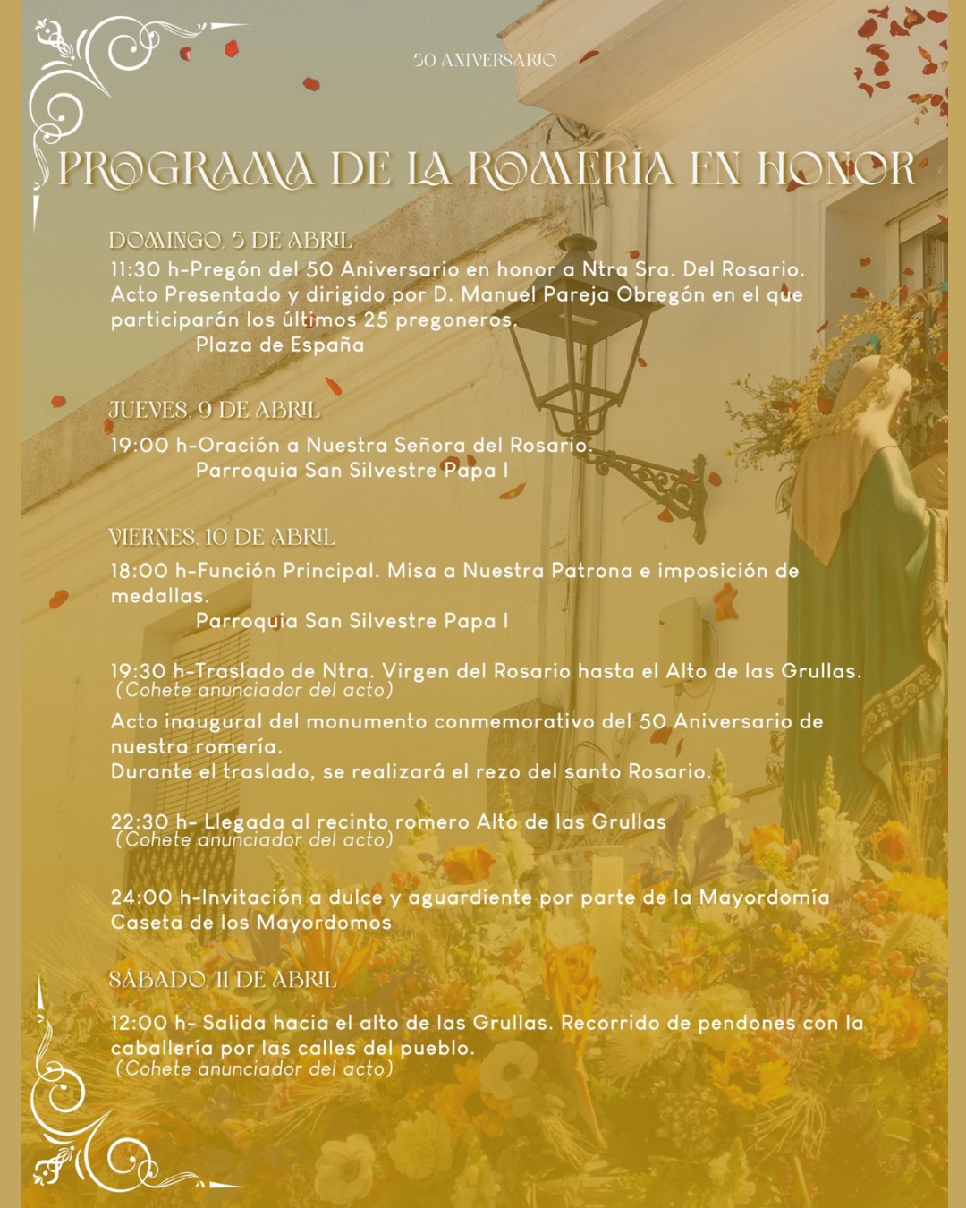 San Silvestre de Guzmán vive estos días una de sus celebraciones más emblemáticas con la Romería en honor a Nuestra Señora del Rosario, que este año adquiere un significado especial con motivo de su 50 aniversario.