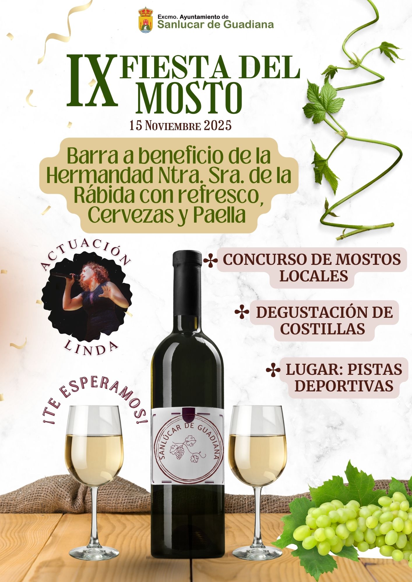 Sanlúcar de Guadiana se prepara para celebrar una de sus citas más esperadas del otoño: la IX Fiesta del Mosto, que tendrá lugar el sábado 15 de noviembre en las Pistas Deportivas del municipio. Una jornada que combina tradición, convivencia y gastronomía en torno a uno de los productos más emblemáticos de la temporada: el mosto.