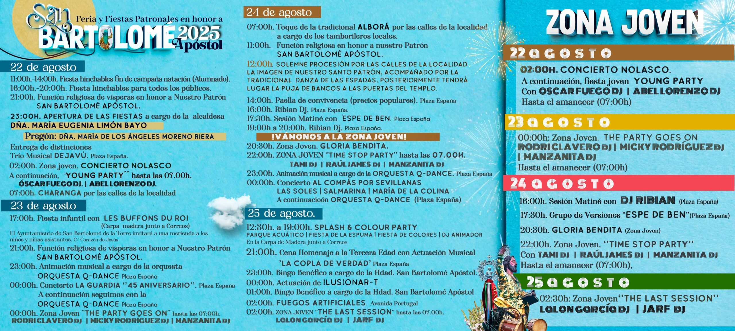 Del 22 al 25 de agosto, el municipio celebra su Feria y Fiestas Patronales en honor a San Bartolomé Apóstol, con una programación llena de música, cultura, convivencia e iniciativas para todas las edades.